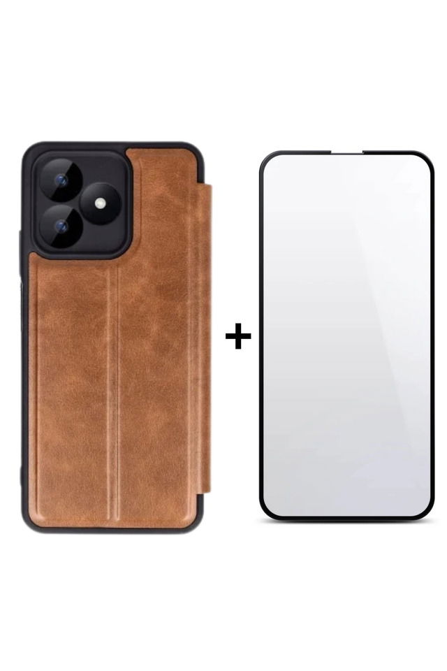 REALME NOTE 50 RENKLİ YUMUŞAK KAPAK KILIF / EKRAN KORUYUCU- KAHVERENGİ